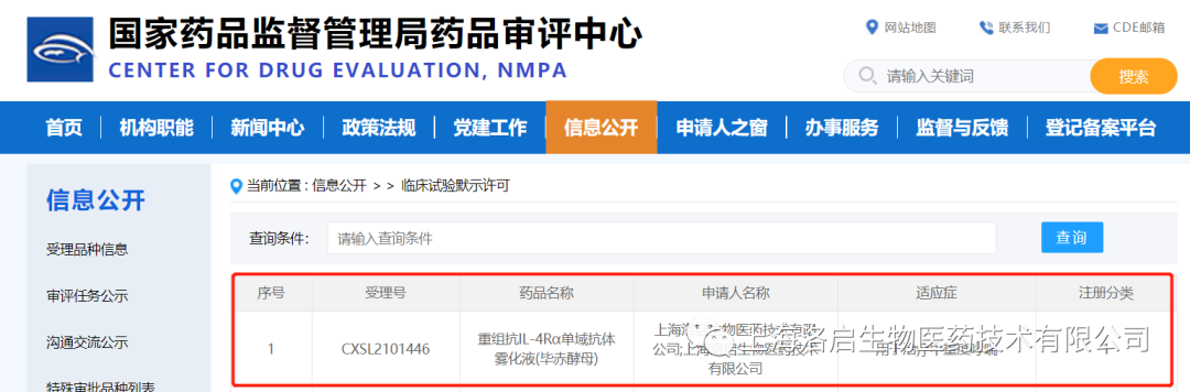 2022年01月26日,中国国家药品监督管理局药品审评中心(CDE)公示,上海SG胜游(中国)生物医药技术有限公司一款针对中重度哮喘治疗的核心药物LQ036——重组抗IL-4Rα单域抗体雾化液(毕赤酵母)的临床试验申请(IND)正式取得批准(通知书编号:2022LP00124),从IND受理到获批仅用2个月,此间无发补项。